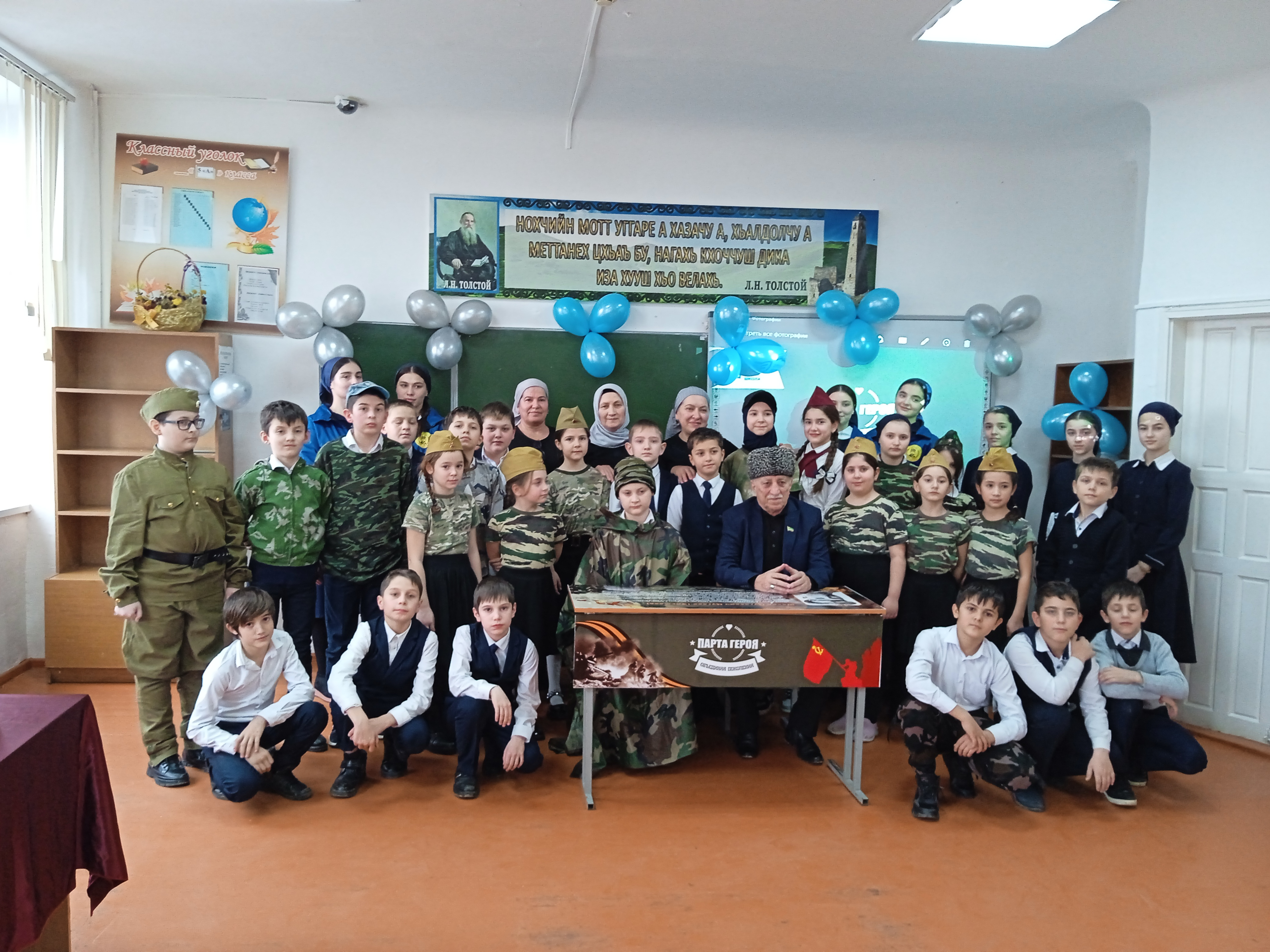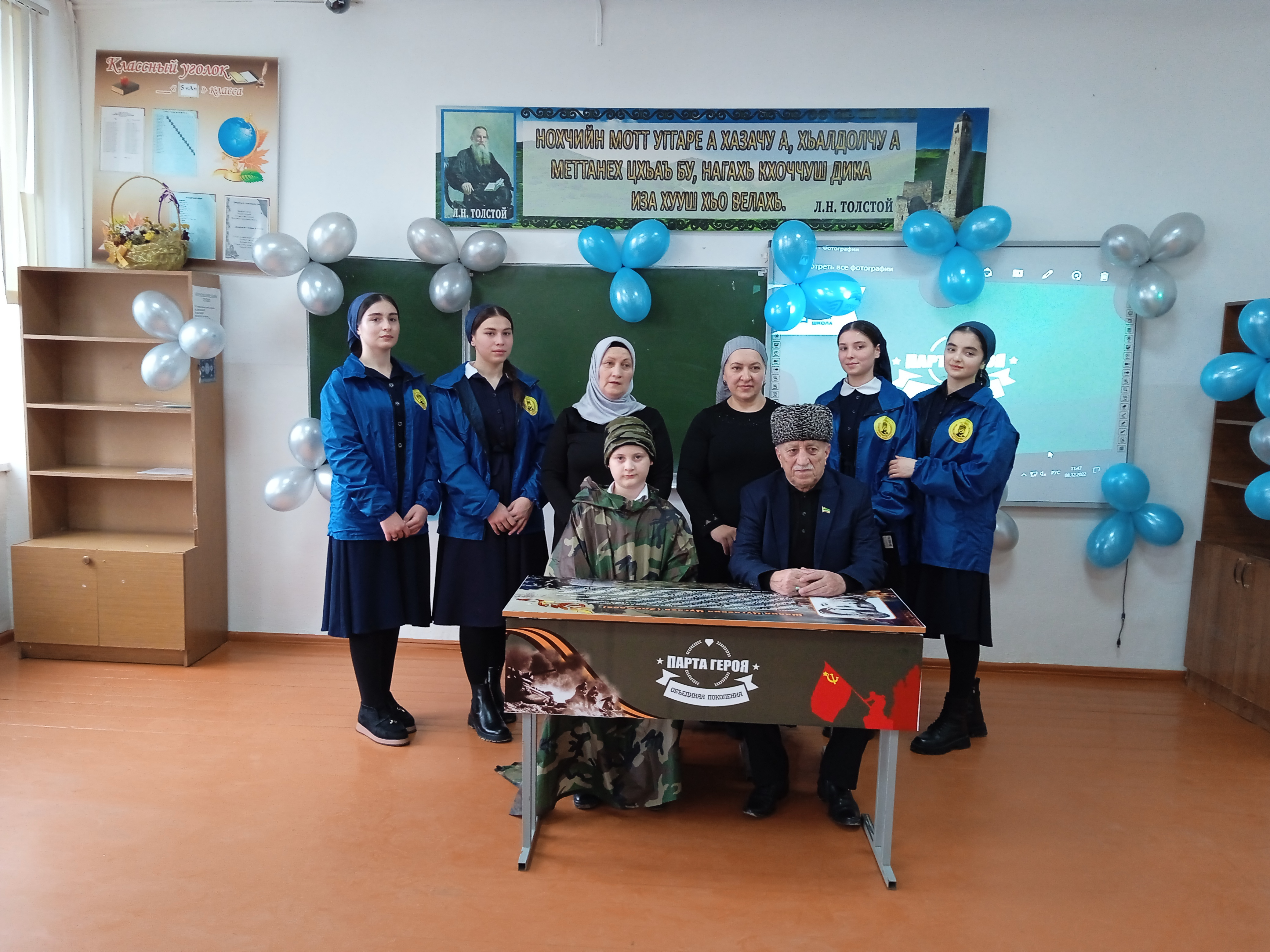 08.12.2022МБОУ «СОШ № 2 с. Ачхой-Мартан»присоединились к Всероссийскому образовательному проекту «Парта Героя». Цель проекта – напомнить обучающимся о земляках – Героях, проявивших личное мужество и готовность к самопожертвованию. Так, в средней школе № 2 состоялась торжественная церемония открытия «Парта Героя». А если точнее, «Парта Героя» –Эльжаева Шахида Цугаевича. В неполные 17 лет в 1941 году добровольно ушёл на войну,воевал в 270-й стрелковой дивизии,которая дислоцировалась под г.Белгород Белгородской области. Шахид был пулеметчиком,звание сержант. За боевые заслуги ему неоднократно объявлялась благодарность. В 1948 году из извещения матери стало известно,что Шахид, как написано в известии погиб в бою, проявив геройство и мужество 21 июля 1943 года. На мероприятии приняли участие почетные гости, Юнармейцы, Юные Кадыровцы СОШ № 2,родные погибших. Много теплых и трогательных душу слов прозвучало в адрес совсем еще юных военнослужащих, погибших на Украине: «Когда Герой, которому посвящена парта, совершал свой подвиг, он наверняка не стремился как-то отличиться – и просто честно выполнял свой долг. Как сегодня во время спецоперации честно выполняют долг наши ребята. Это и есть связь поколений, наша общая история, в которой героем родной земли и страны может стать каждый». Право первыми сесть за «Парту Героя» было предоставлено ученику 5 «А» класса Искендерову Муслиму Мурадовичу.