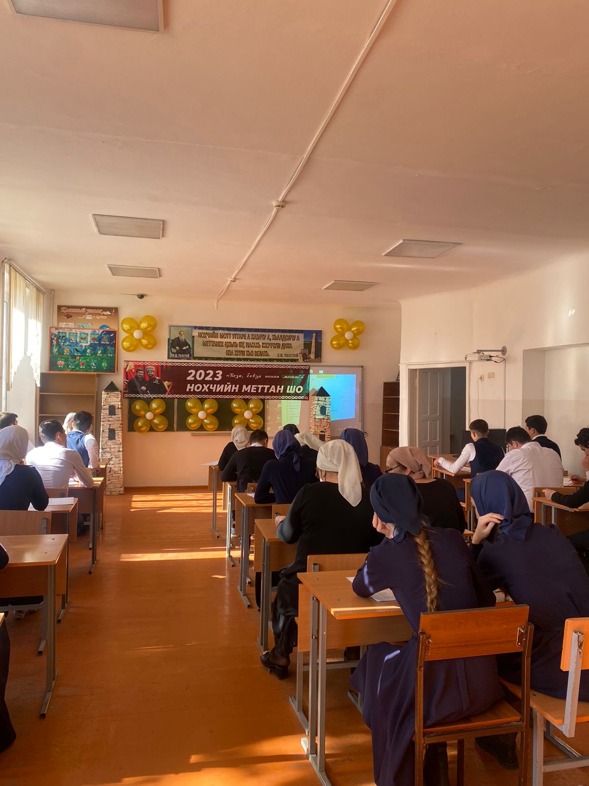 МБОУ "СОШ№2 с.Ачхой-Мартан". "Ненан мотт-къоман хазна" - ц1е йолу региональни этнографин диктант йазийна хьехархоша а, дешархоша а, бахархоша.
