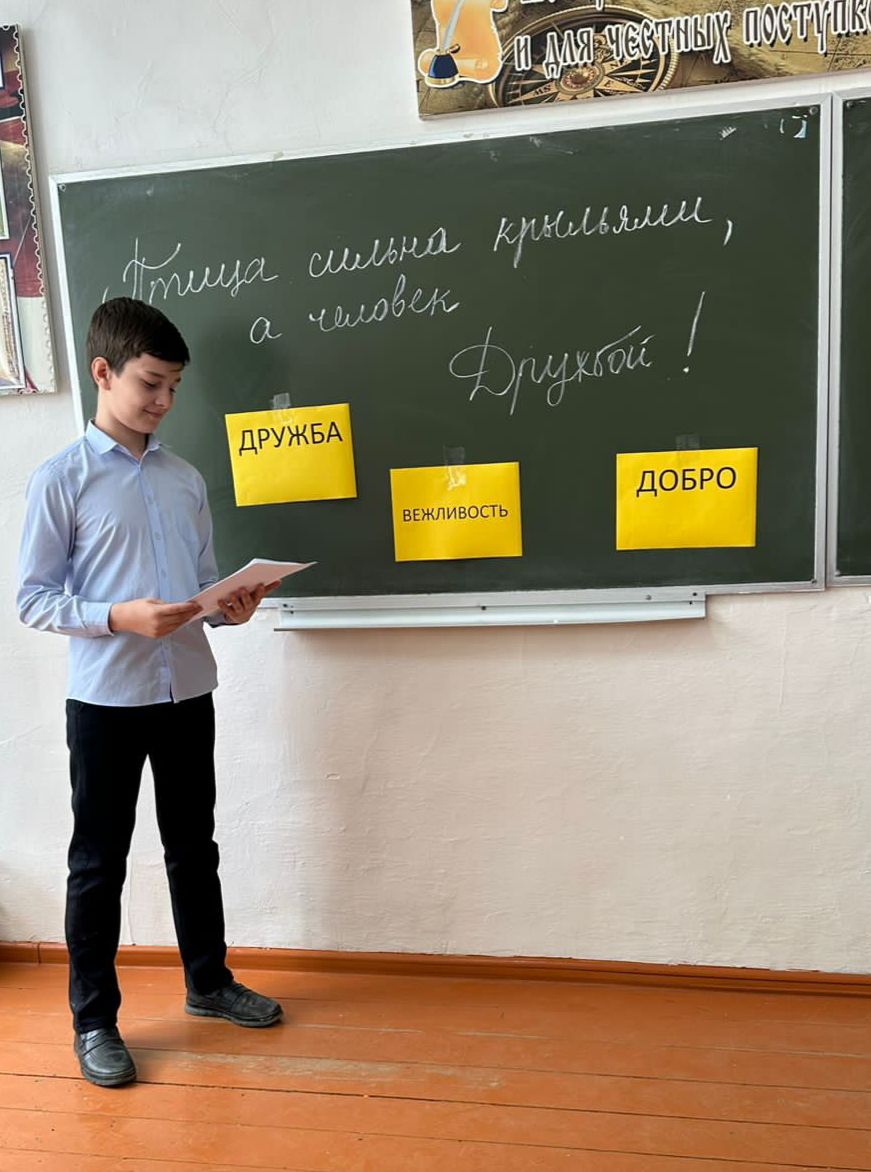 06.04.2023В рамках реализации задачи национального проекта «Образование» в «СОШ №2 с.Ачхой-Мартан» 6 апреля прошло мероприятие на тему «Дружба, добро и вежливость»