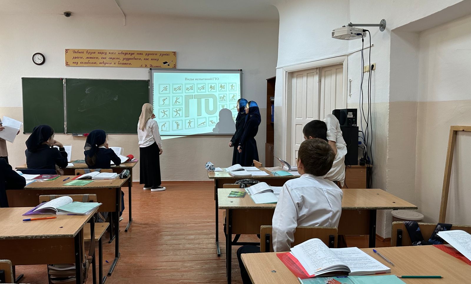 01.11.2023В МБОУ «СОШ 2 с.Ачхой-Мартан» была проведена Всероссийская акция «Урок ГТО» среди обучающихся 8 класса с целью внедрения и реализации Всероссийского физкультурно-спортивно комплекса «Готов к труду и обороне».