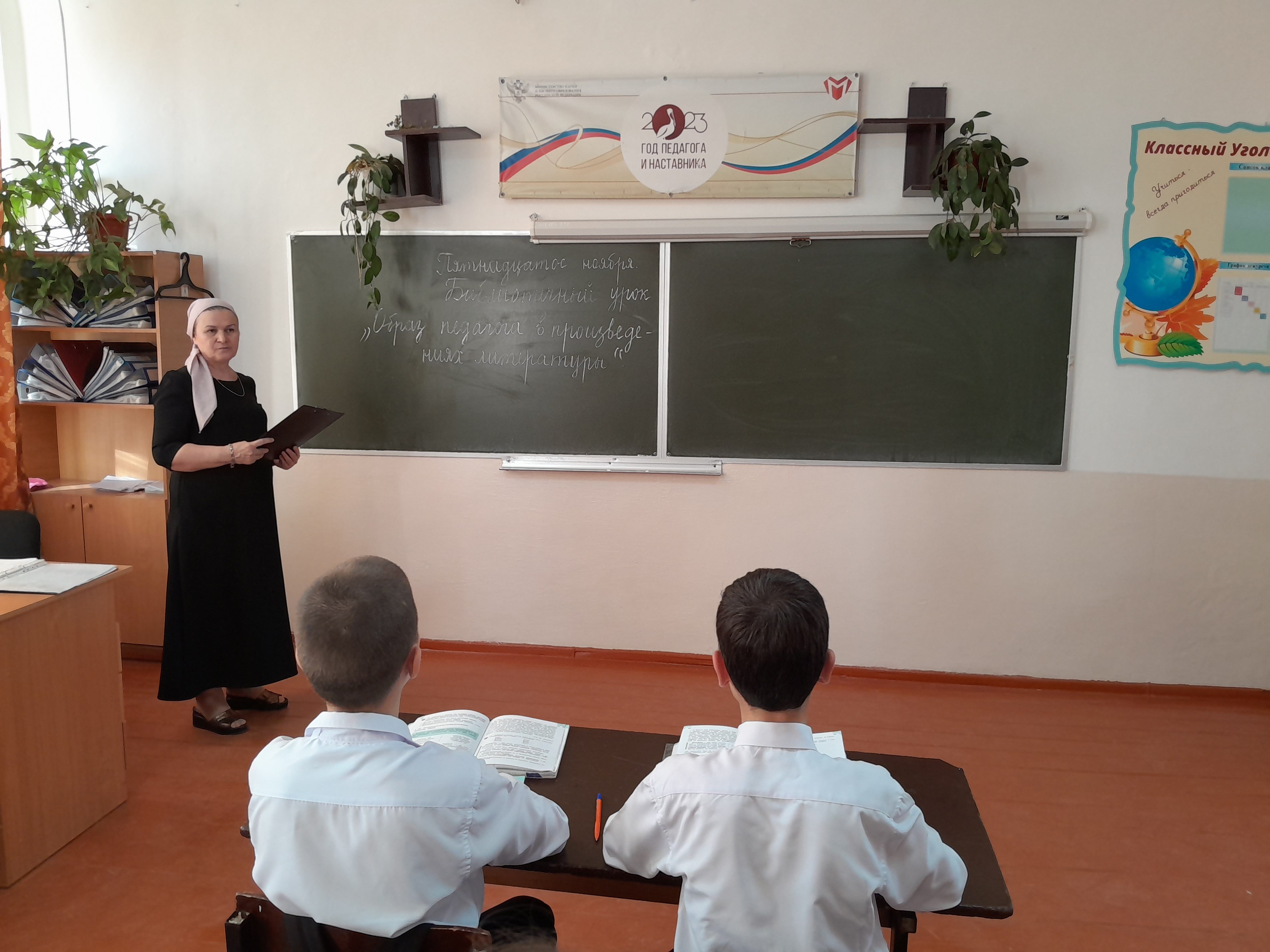 15.11.2023В рамках Года педагога и наставничества в МБОУ «СОШ№2с.Ачхой-Мартан» педагогом-библиотекарем Исламовой Х.Ш. проведен библиотечный урок «Образ учителя в произведениях литературы»