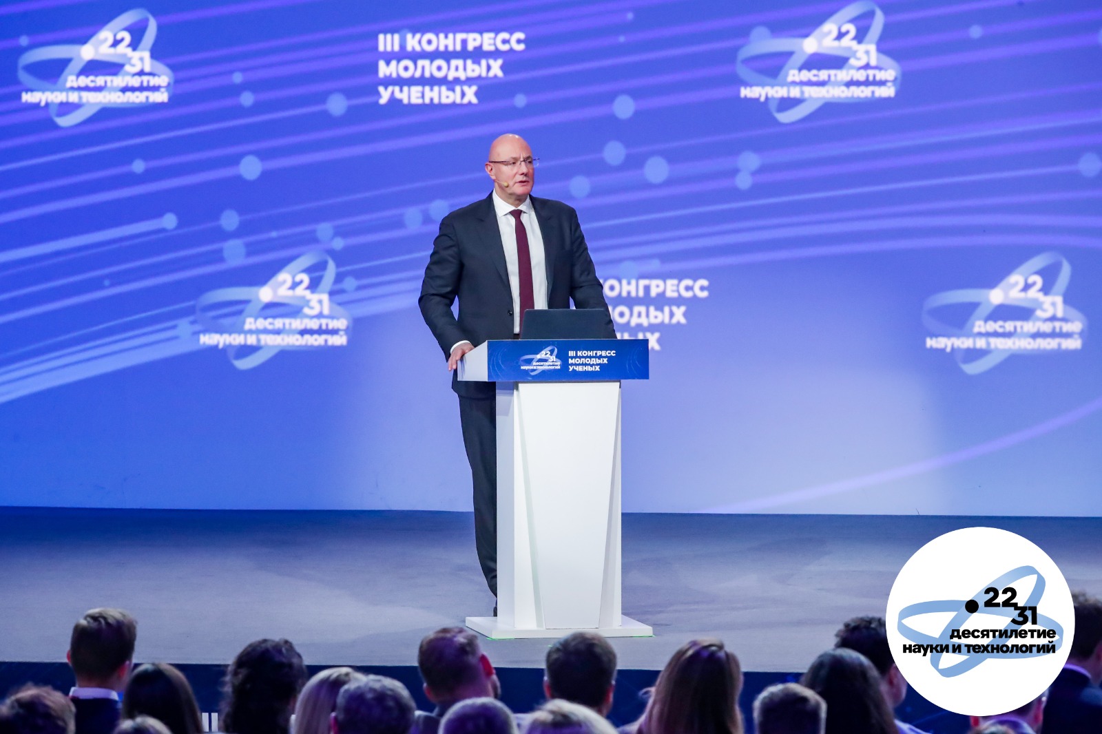 04.12.2023Заключительным мероприятием III Конгресса молодых ученых стало пленарное заседание на тему «Наука: пространство возможностей». Оно прошло под председательством заместителя Председателя Правительства Российской Федерации Дмитрия Чернышенко. Во вступительном слове он сказал: «Первоочередная задача, поставленная Владимиром Путиным – укрепление технологического суверенитета. Для этого страна должна сама себя обеспечивать всей критически значимой продукцией – микроэлектроникой, станками, транспортом, медикаментами, продуктами питания. Именно такие производственные цепочки лежат в основе «мегапроектов». При этом мы понимаем, что добиться успехов в экономике в целом и в промышленном производстве в частности невозможно без ученых и их прорывных идей. Это глобальная задача для науки. Поэтому Правительство продолжит создавать все условия для комфортной работы исследователей».