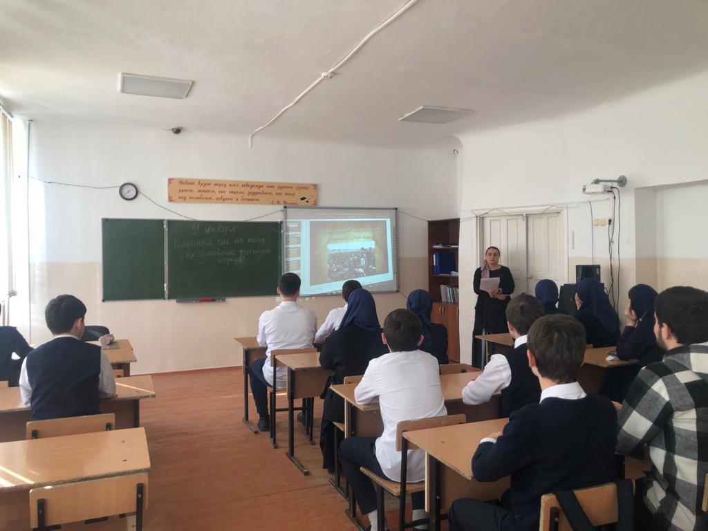 11.01.2024С целью активизации и актуализации знаний, полученных школьниками ранее, закрепление учащимися понятий «депортация», «реабилитация», «геноцид», раскрытие сущности геноцида, проводимого против народов в МБОУ «СОШ №2 с.Ачхой-Мартан» во всех классах проведены мероприятия, посвященные Дню восстановления государственности чеченского народа, в рамках национального проекта «Образование».