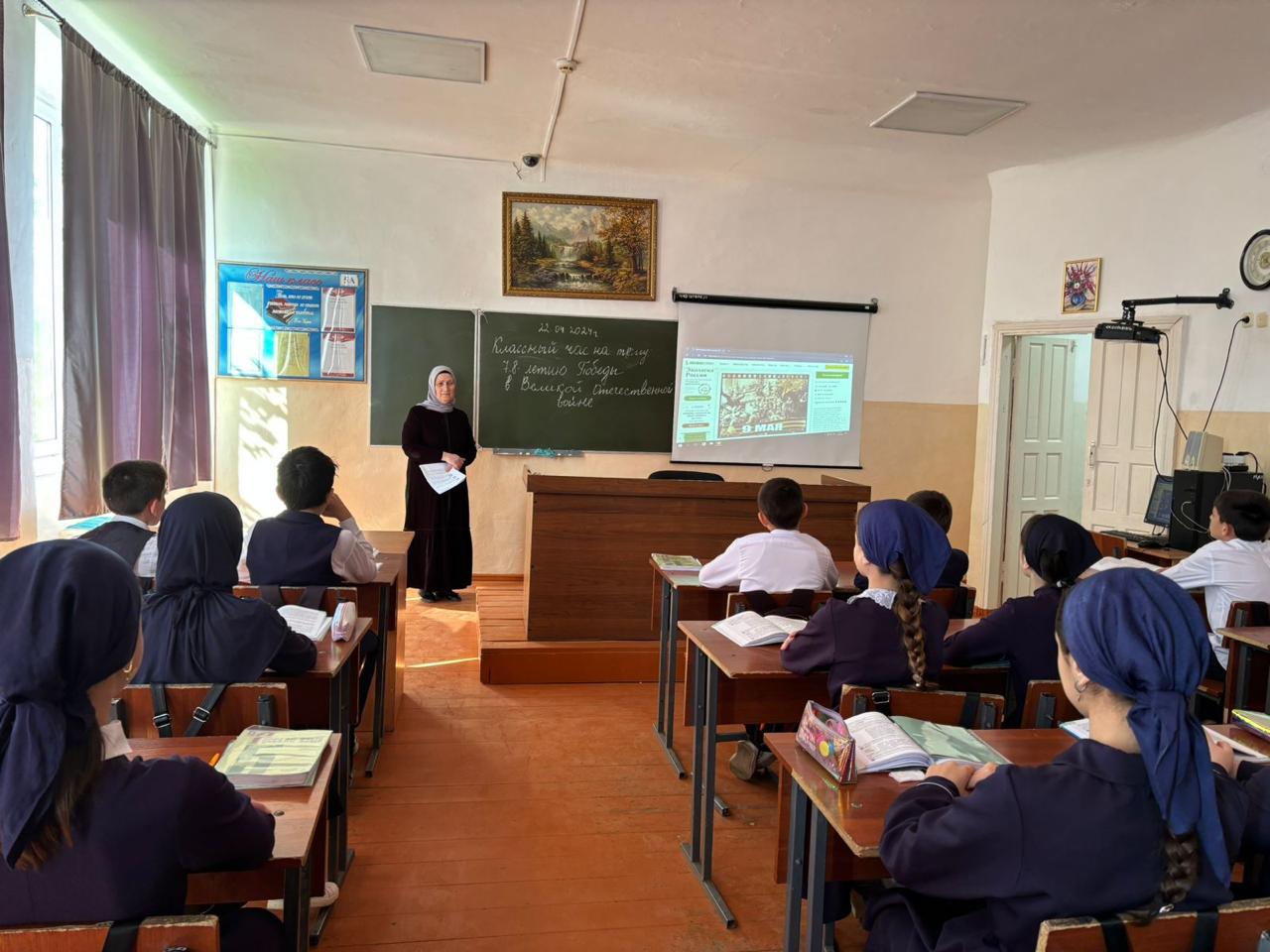 22.04.2024Сегодня, 22 апреля в школе прошли мероприятия, посвященные 78-летию Победы Великой Отечественной войне. Ребята познакомилисб со страницами истории нашей страны того периода, с героизмом и патриотизмом советского народа, узнали имена полководцев и мх роль в рассмотрриваемых сражениях. День Победы-всенародный праздник, который никогда не стереться с памяти челочества. Мы помнмм! Мы гордимся1