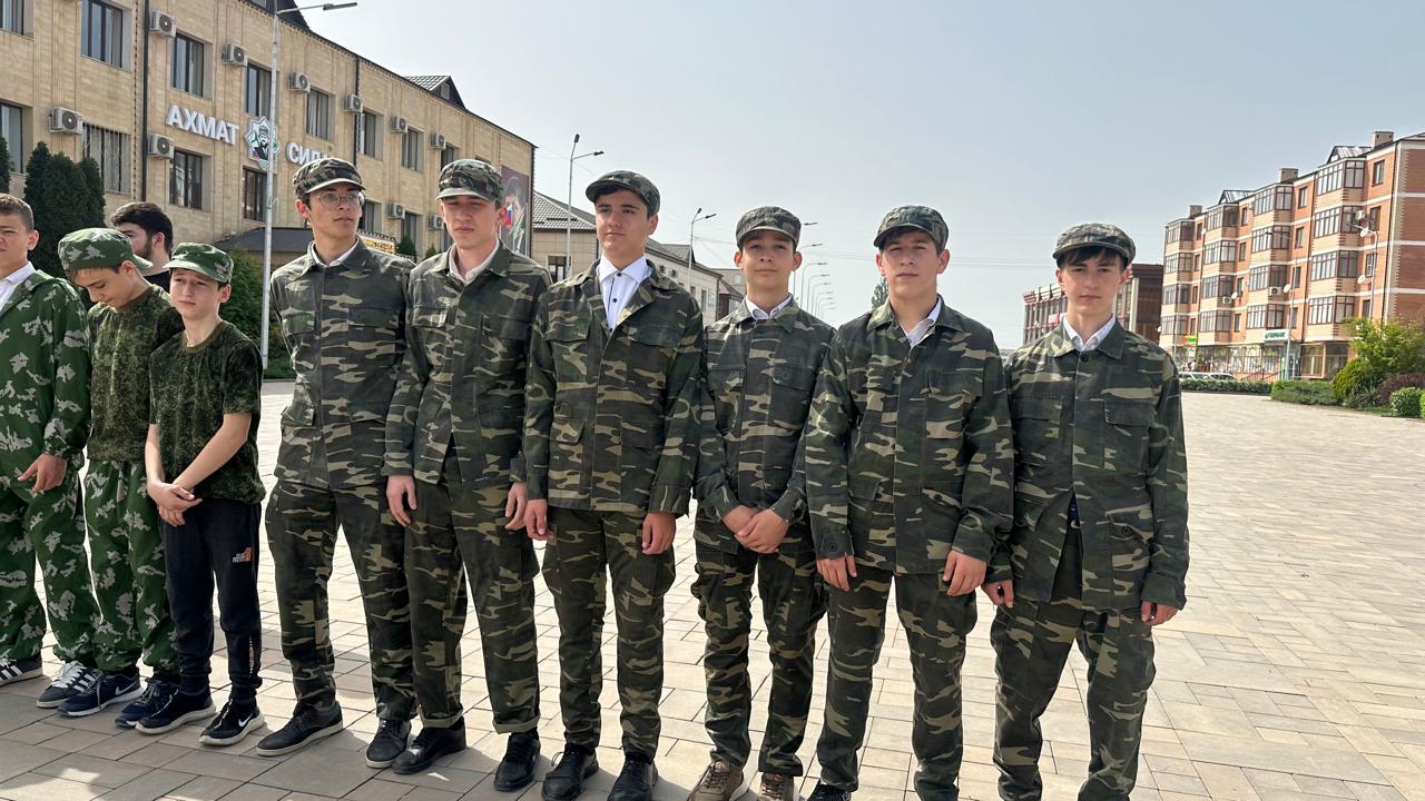 Директор школы поздравила участников с приближающимся праздником и отметила, что дети большие молодцы. Ребята военных формах под звуки пеен военных лет прошли колонной "Бессмертного полка".