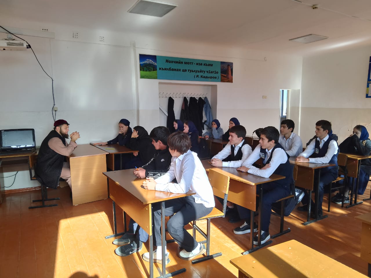 24.10.2024 г в МБОУ «СОШ 2 с. Ачхой- Мартан» духовником Ойсаев Ш. Ш. была проведена профилактическая беседа с учащимися с 8-10 класса на тему: «Культура поведения в общественных местах»