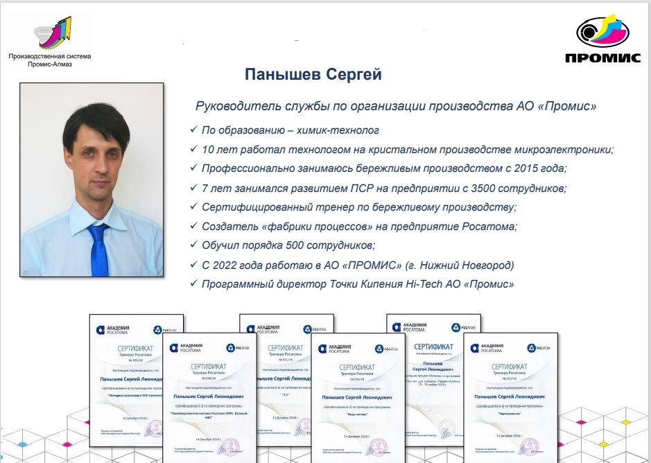 Предприятия Чеченской Республики участвующие в нацпроекте «Производительность труда» приняли участие в мероприятиях на тему «Менеджмент идей», которые проводил руководитель службы по организации производства- Программный директор Точки Кипения Hi-Tech АО «Промис» С.Л. Панышев  из г. Нижнего Новгорода. Точки кипения Hi-Tech — это корпоративные пространства, стимулирующие работу над проектами по рационализаторству, созданию новых продуктов и внедрению высоких технологий в процесс производствав рамках национального проекта «Производительность труда».Они открываются на предприятиях – участниках нацпроекта, в центрах разработки и трансфера технологий, технопарках, научно-исследовательских организациях и особых экономических зонах.