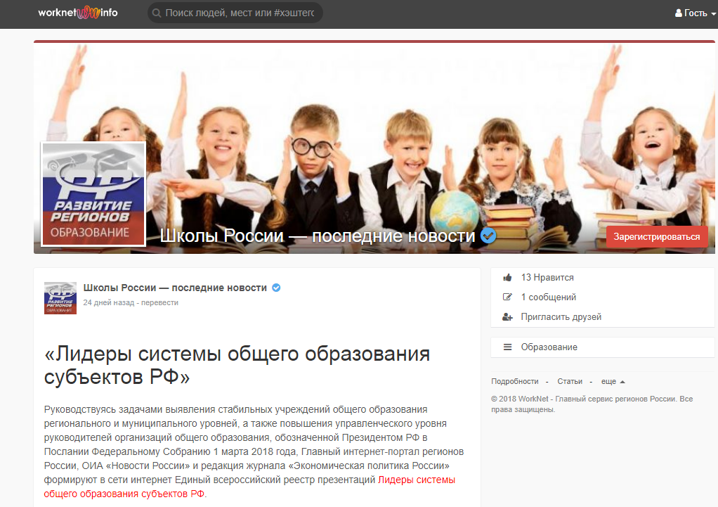 Название и описание преимуществ учебного заведения можно сохранить на страницеhttps://worknet-info.ru/setting/profile-setting. Зарегистрированные региональные и муниципальные органы управления образованием, учреждения и организации могут бесплатно презентовать свою организацию по любым актуальным вопросам развития региональной системы общего образования и собственной организации, а также создавать Сводные образовательные группы https://worknet-info.ru/create-group.