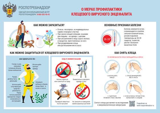 Что такое клещевой вирусный энцефалит? Это вирусная инфекция, поражающая преимущественно центральную нервную систему. Тяжелые формы клещевого энцефалита могут привести к летальным исходам и стойкой инвалидизации. Как происходит заражение человека? Ведущий механизм передачи возбудителя – трансмиссивный (при присасывании инфицированного клеща), значительно реже заражение происходит алиментарным путем при употреблении в пищу сырого молока коз и коров, в отдельных случаях - контактным путем при раздавливании клеща и последующем переносе вируса на слизистые оболочки или поврежденную кожу. Где риск заразиться клещевым энцефалитом выше? Ареал обитания клещей достаточно широк и захватывает многие субъекты Российской Федерации, однако наибольшую опасность представляют территории, эндемичные по клещевому энцефалиту. Эндемичными называются территории, где распространены клещи, зараженные вирусом клещевого энцефалита. В Российской Федерации эндемичными по клещевому энцефалиту являются 49 субъектов страны, в том числе вся Челябинская область. Какие симптомы заболевания? К симптомам энцефалита относятся головная боль, рвота, тошнота, ломота и боль в суставах, высокая температура тела, спутанность сознания, сонливость, дезориентация, судороги. При наличии признаков заболевания очень важно своевременно обращаться к врачу. Как предотвратить заболевание? Самая эффективная мера профилактики клещевого энцефалита -вакцинация. Она показана жителям эндемичных районов и людям, планирующим поездки в эти районы. Вакцинация проводится круглогодично в медицинских организациях по месту прикрепления. Вакцинация проводится двукратно, минимальный интервал между первой и второй прививками - 1 месяц. Важно! Для выработки иммунитета после вакцинации требуется не менее двух недель, поэтому завершить прививочный курс (две прививки) необходимо не позднее, чем за 2 недели до выезда в неблагополучную территорию. Чтобы поддержать противоэнцефалитный иммунитет, важно через год сделать ревакцинацию. Последующие ревакцинации проводятся каждые 3 года. Лучше всего вакцинацию проводить заблаговременно - осенью или ранней весной.