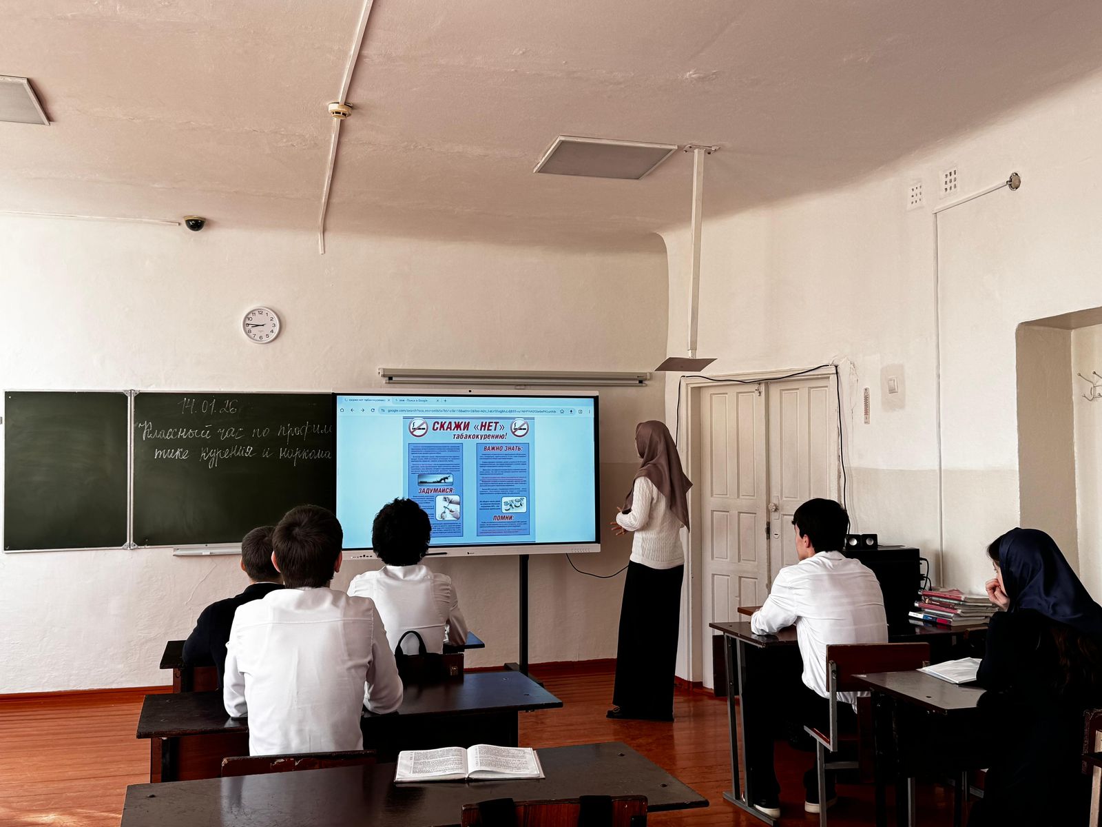 15.01.202614 января в МБОУ «СОШ Nº 2 г. Ачхой-Мартан» социальным педагогом проведены классные часы в 10-11-х классах по профилактике правонарушений и наркомании.Цель: формирование у обучающихся устойчивого негативного отношения к употреблению психоактивных веществ, а также повышение уровня правовой грамотности и ответственности за совершенные правонарушения.